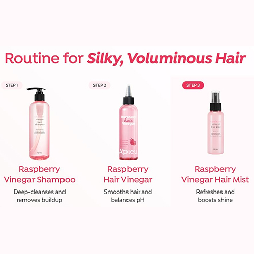 Cette brume régule l’équilibre hydrolipidique du cuir chevelu grâce à sa concentration en vinaigre (10 000 ppm) et nourrit la fibre avec l’extrait de framboise (20 000 ppm). Enrichie en phytokératine pour une brillance sublime et en extrait de fleur d’hibiscus pour réparer les cheveux fragilisés.