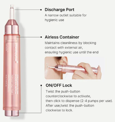 1. Ouvrir le sérum en tournant à gauche et appuyer sur la pompe pour appliquer une quantité modérée sur le visage.