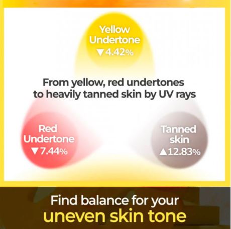 - Aide à corriger simultanément les teints ternes, les rougeurs et les tonalités jaunâtres.